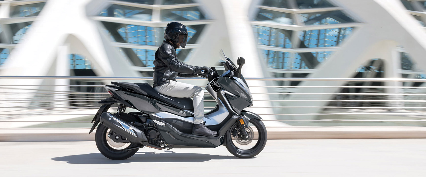 Jantung mekanis 249,01 cc miliknya sanggup memuntahkan torsi puncak 24 Nm pada 6.250 rpm dan tenaga masimal 23,5 PS pada 7.500 rpm. Sistem transmisi pakai CVT. Kapasitas tangki bensinnya cuma 11,5 liter. Bila Anda tertarik dengan Forza 250, pilihan warnanya ada tiga: sword silver metallic (perak), mat gunpowder black metallic (hitam pekat) dan pearl horizon white (putih biru).