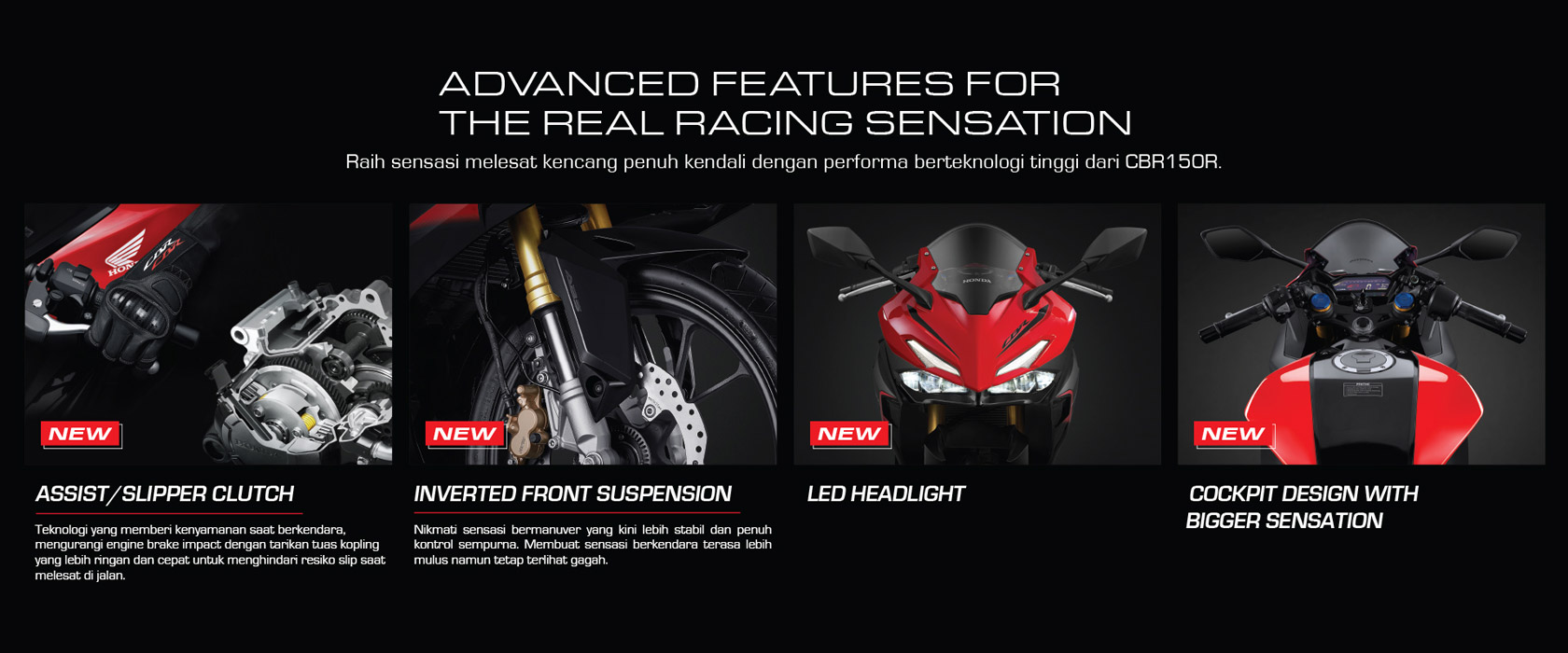 Performa dan handling terbaik menegaskan kekuatan sepeda motor sport sejati, fitur lebih canggih, serta hadir dengan desain beraura big bike yang menciptakan kesan agresif sejak pandangan pertama.