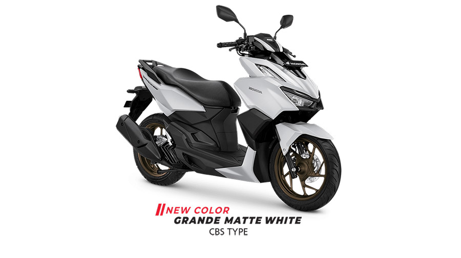 All New Honda Vario 160 dipasarkan dengan 2 tipe yaitu CBS dan ABS. Untuk tipe CBS terdapat warna Active Black, Grande Matte Black, dan Grande Matte Red. Sedangkan untuk tipe ABS, terdapat warna Active Black, Grande Matte Black, dan Grande White. Tipe ABS memiliki velg dengan warna burnt titanium serta sentuhan emblem Vario yang semakin memberikan kesan lebih premium.
