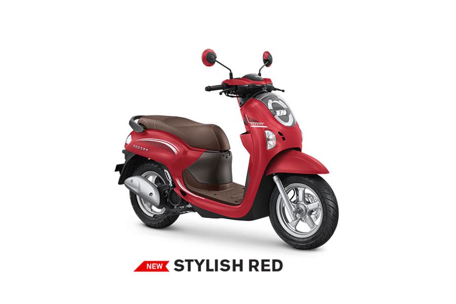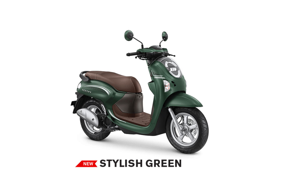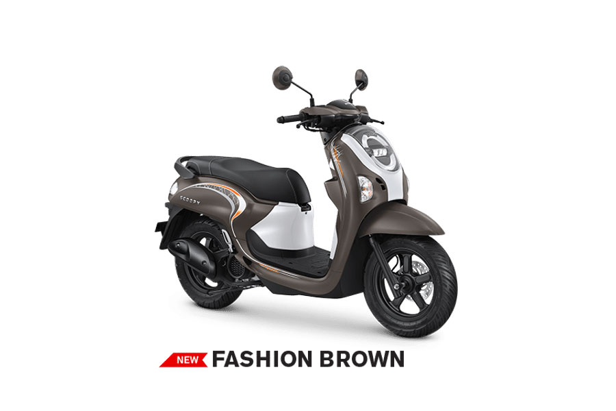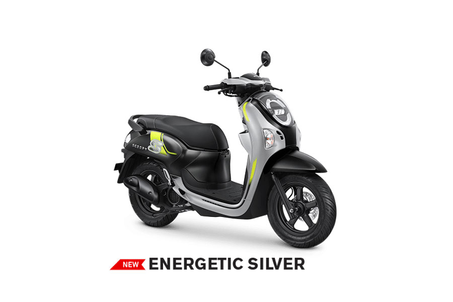 New Honda Scoopy ditawarkan dengan 4 varian dan 8 pilihan warna yang menjadikan model ini semakin atraktif dengan hadirnya desain dan warna terbaru yang telah disesuaikan dengan karakter pengendara yang beragam sekaligus menjadikan model ini trendsetter di kelasnya. Varian Energetic hadir dengan dua pilihan warna yaitu Energetic Silver dan Energetic Red. Varian Fashion hadir dengan warna Fashion Blue dan Fashion Brown.
